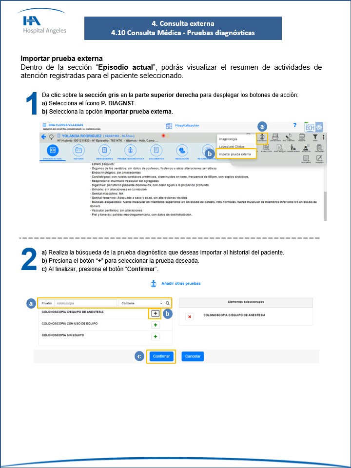 Consulta médica - Pruebas diagnósticas