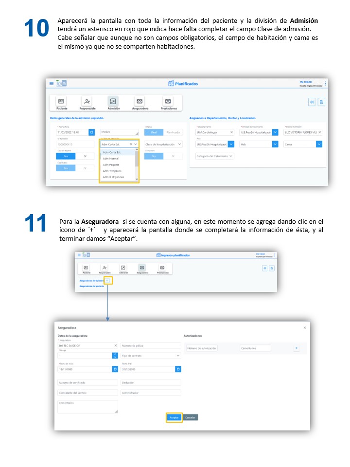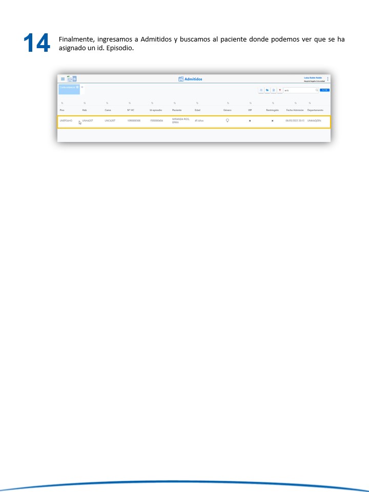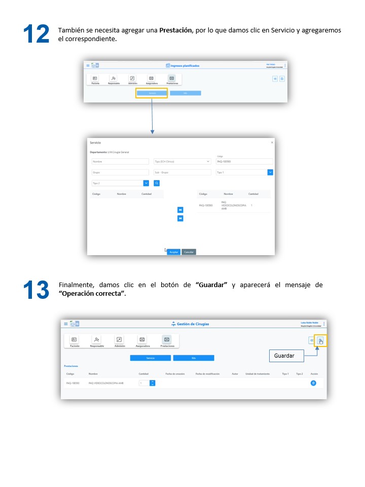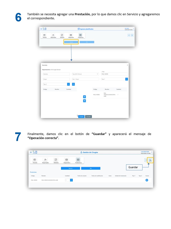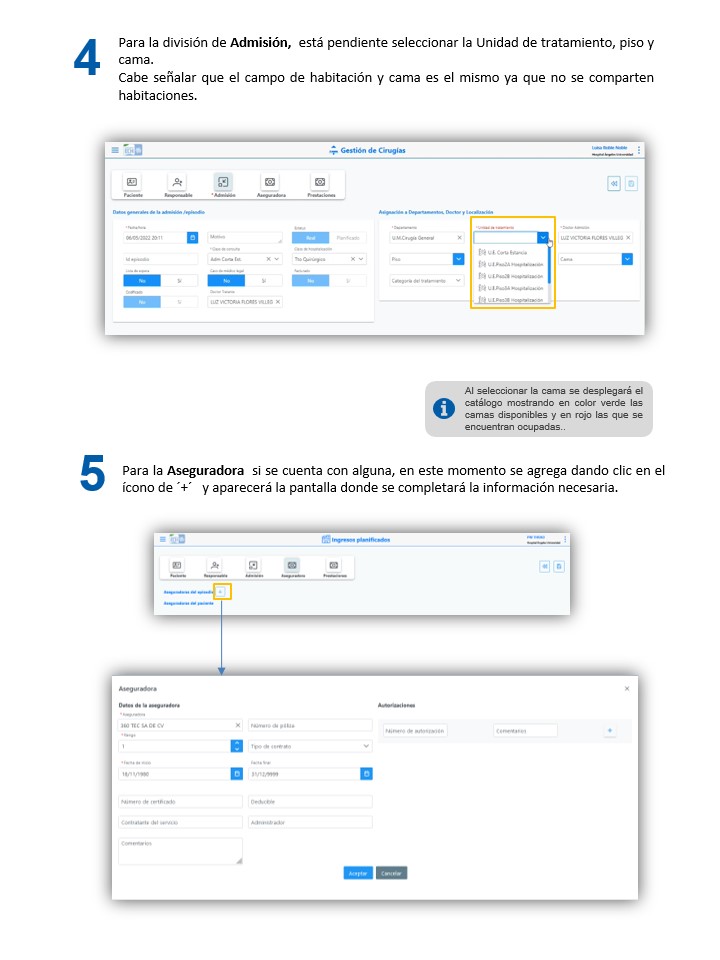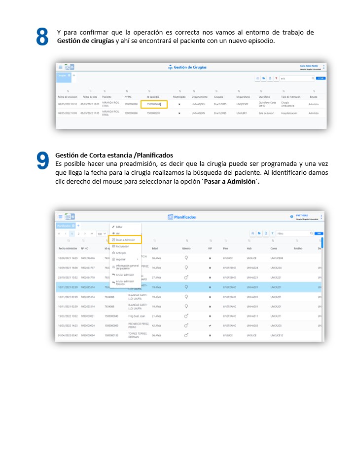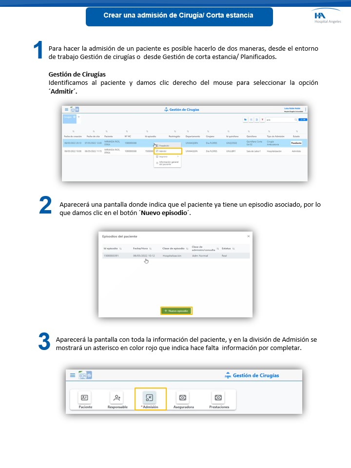 Corta estancia - Crear una admisión de cirugía