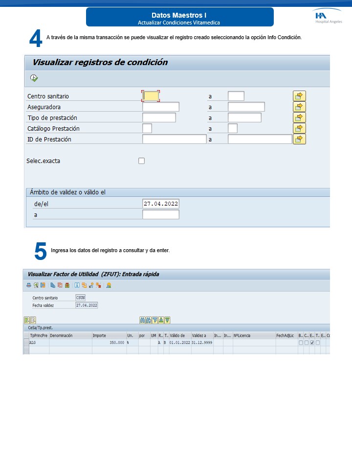 Datos maestros BE I - Actualizar Condiciones Vitamedica