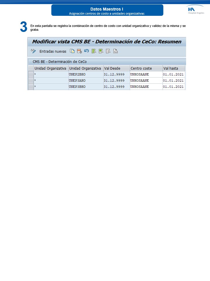 Manual ECH (Clinico - Gestión - Facturacion)TI Datos maestros BE I - Asignación centros de costo a unidades organizativas Creado con el Personal Edition de HelpNDoc: Productor gratuito de EPub