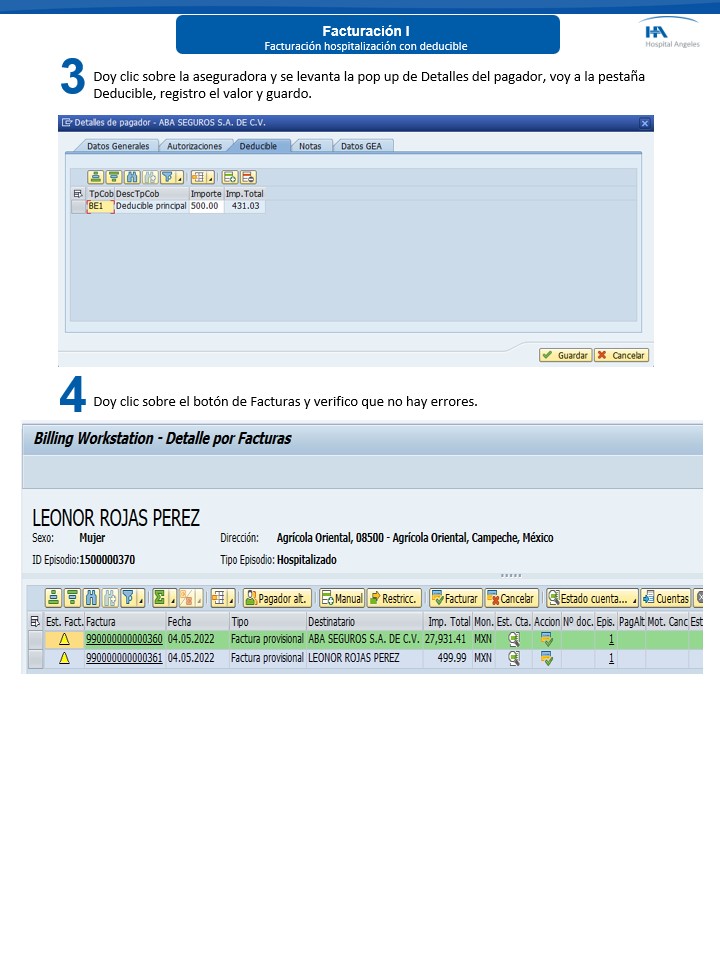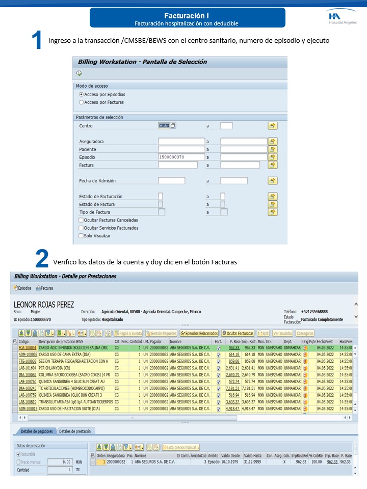 Facturación I - Hospitalización con deducible
