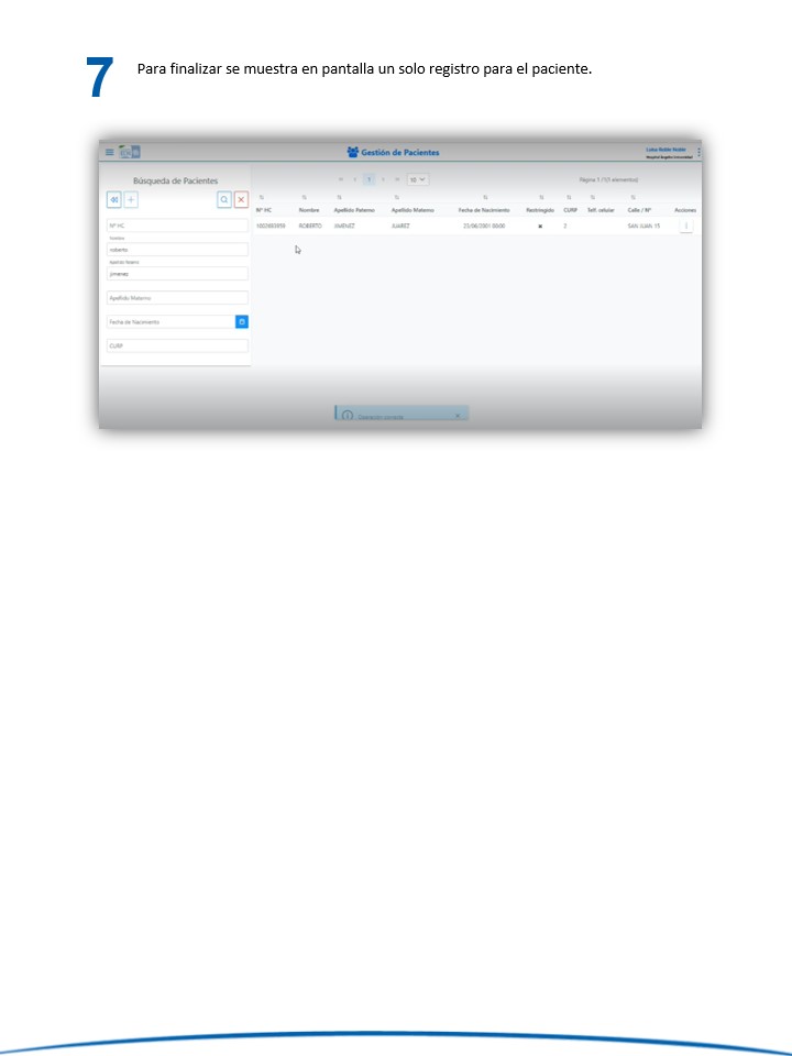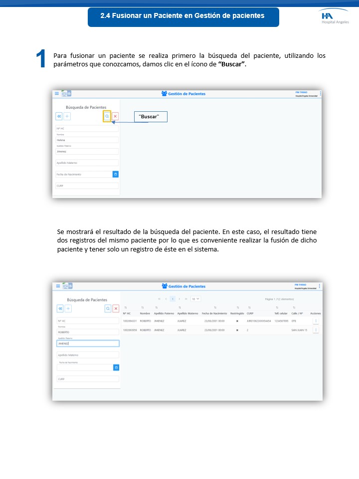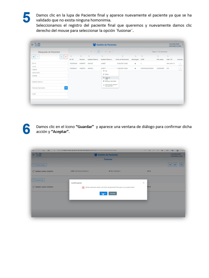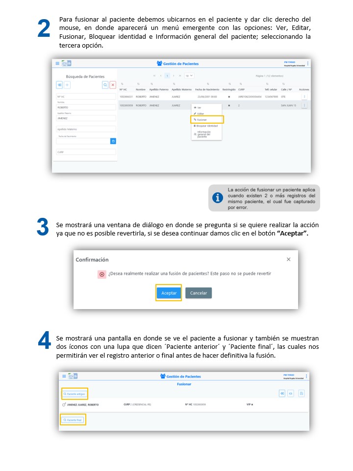 Gestión de pacientes - Fusionar un paciente