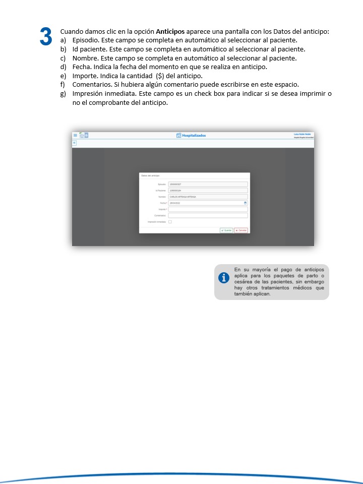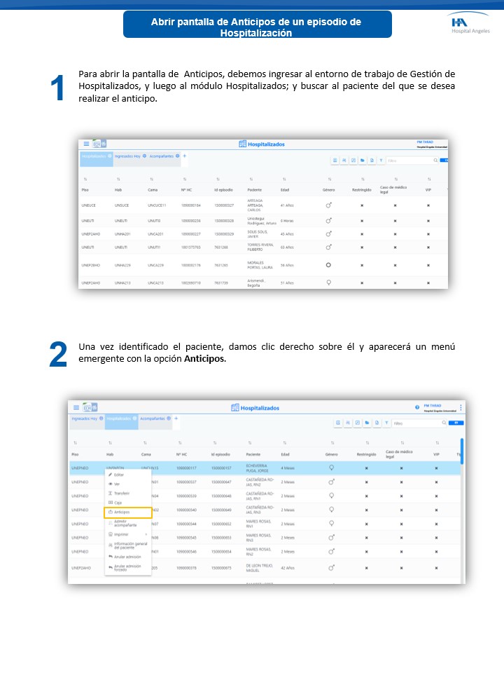 Hospitalización - Abrir pantalla de Anticipos de un episodio