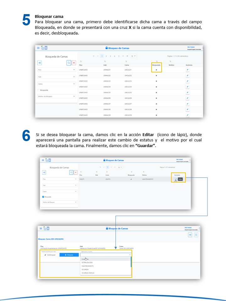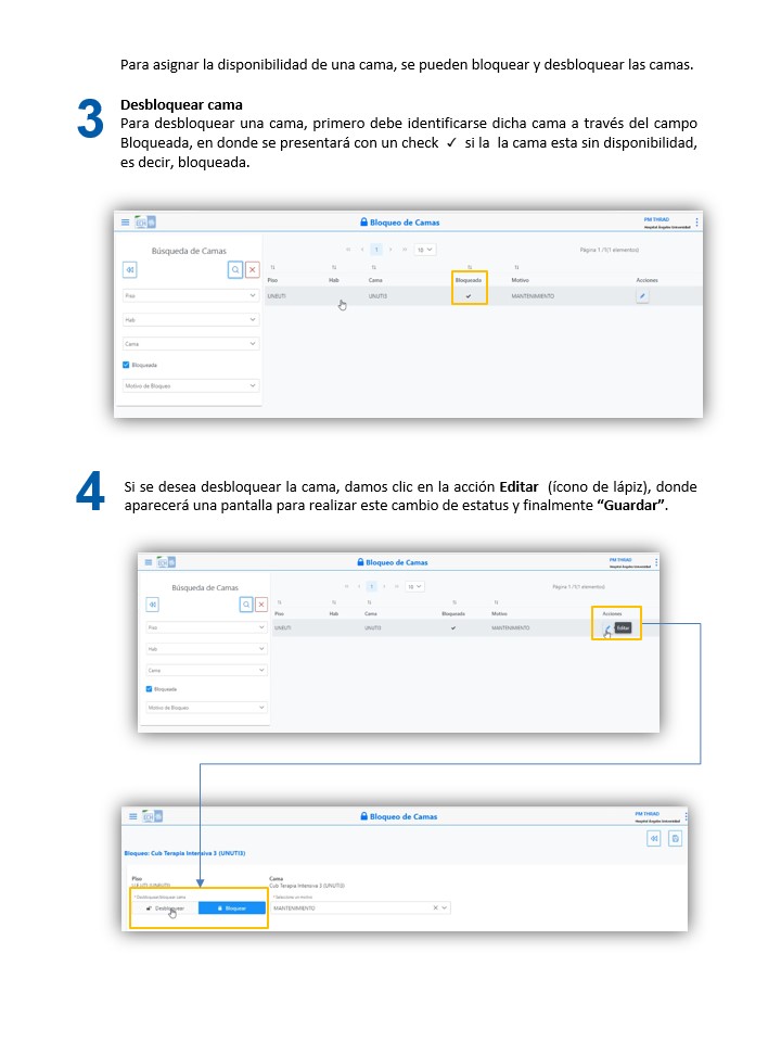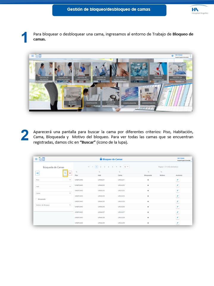 Hospitalización - Gestión de bloqueo/desbloqueo de camas