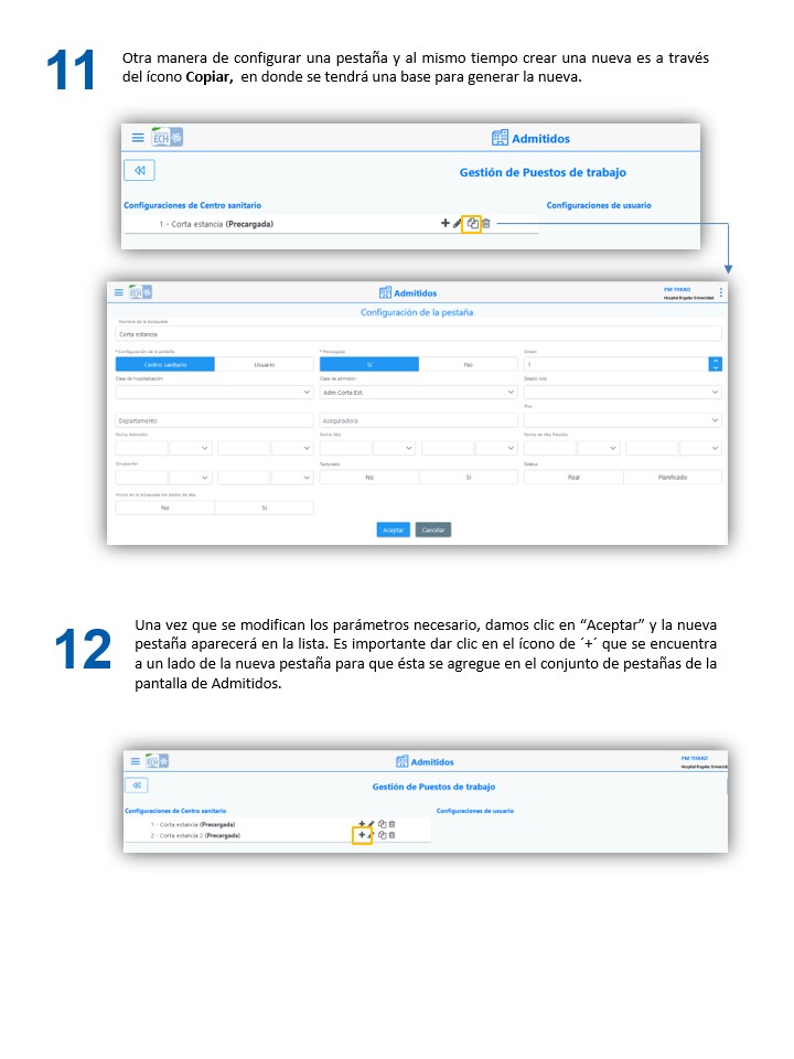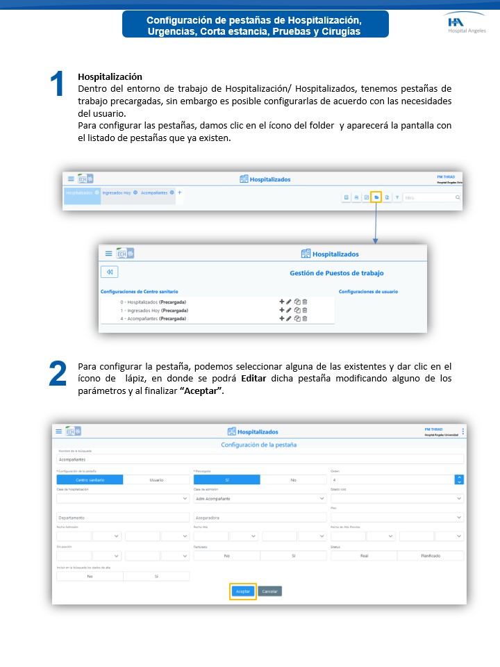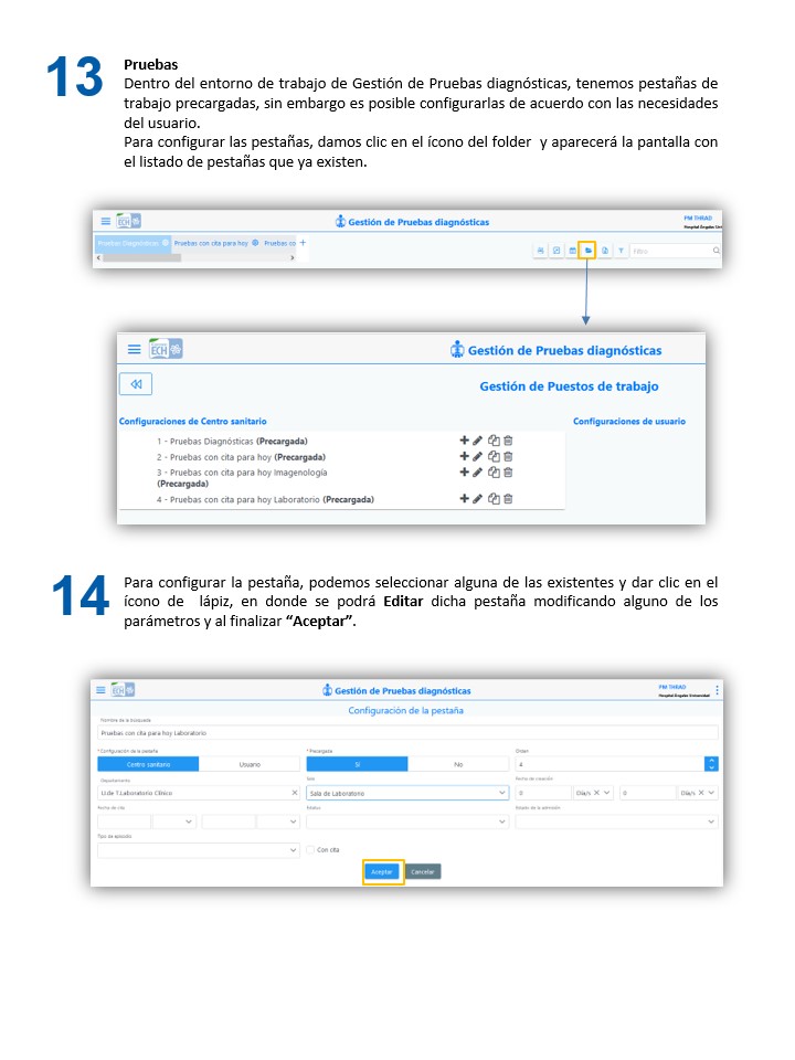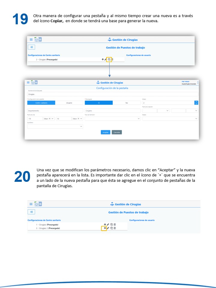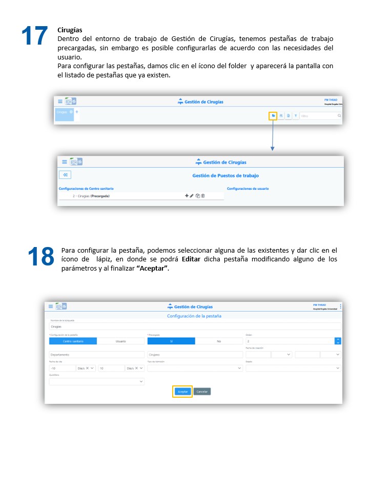 Mantenimiento de PM - Configuración de Pestañas
