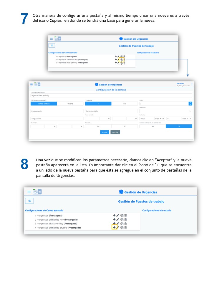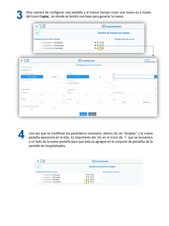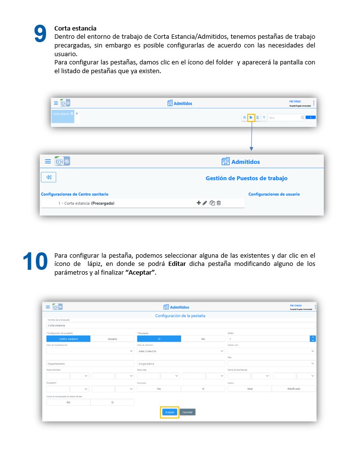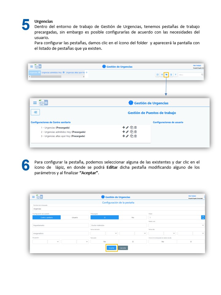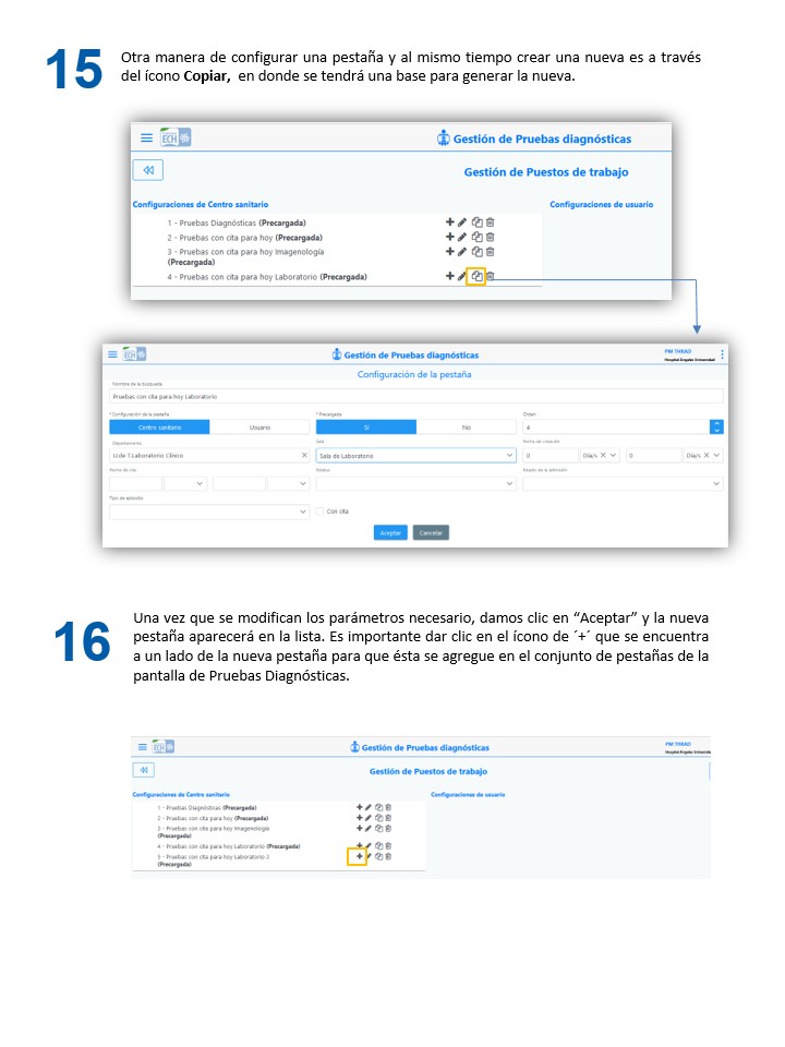 Mantenimiento de PM - Configuración de Pestañas