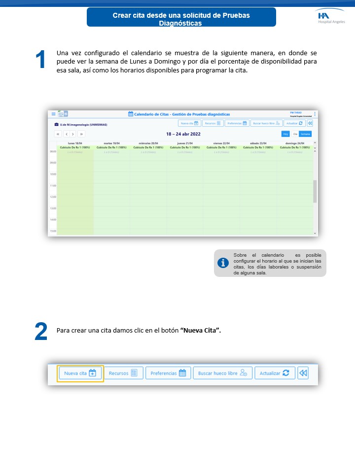 Pruebas diagnósticas - Crear cita desde una solicitud