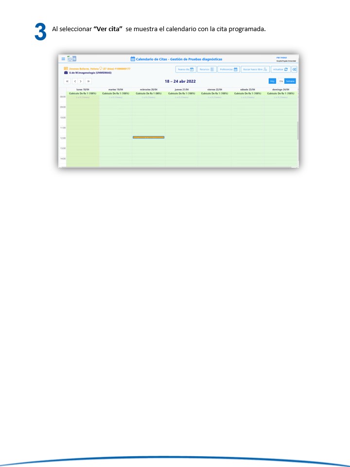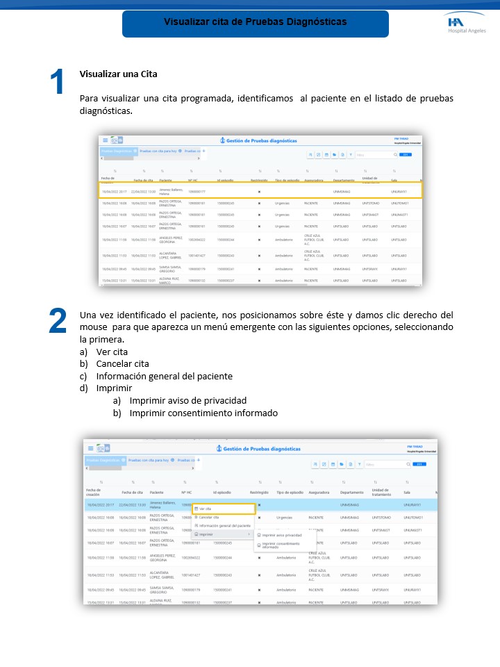 Pruebas diagnósticas - Visualizar cita e imprimir recordatorio desde el listado
