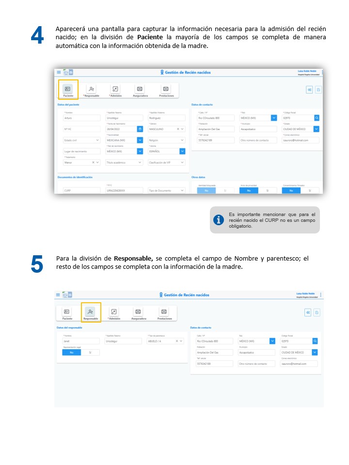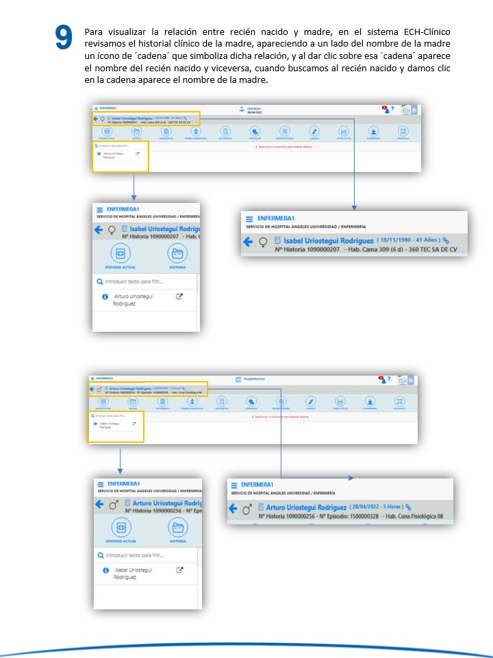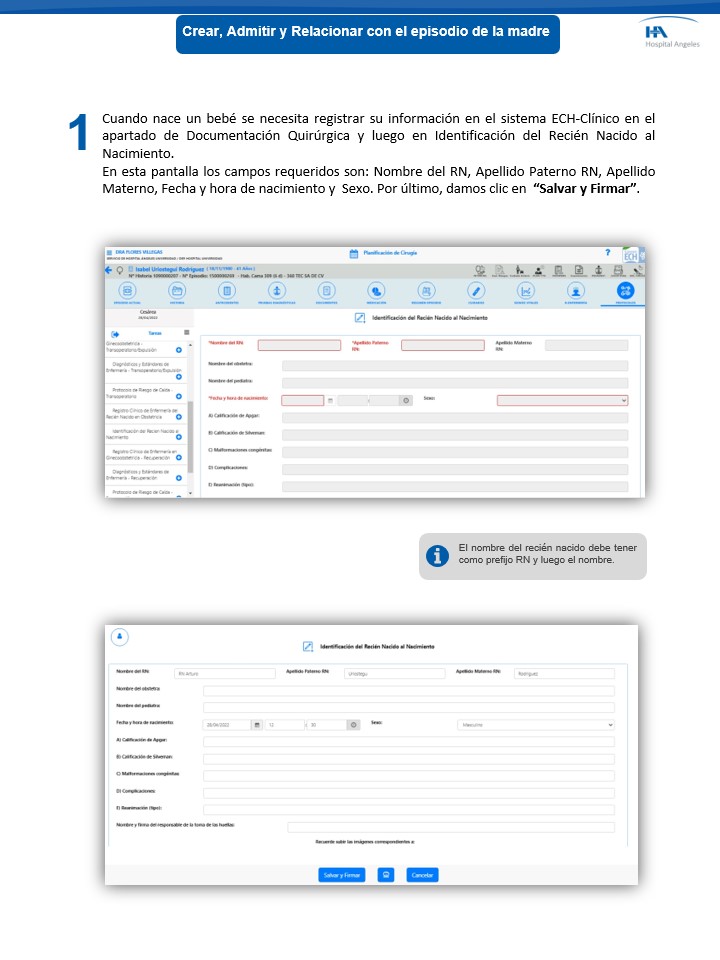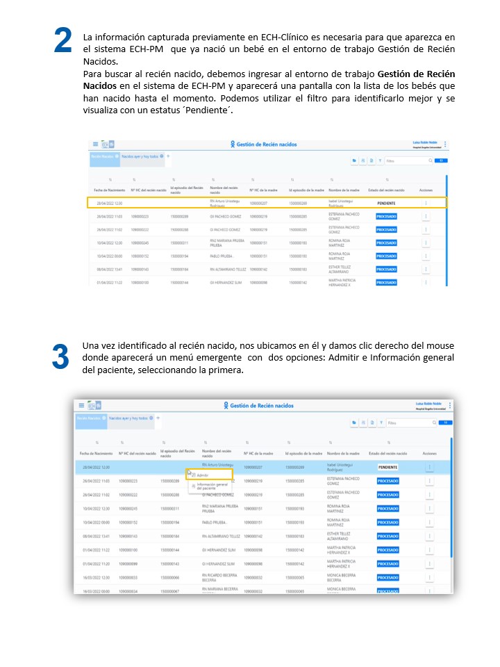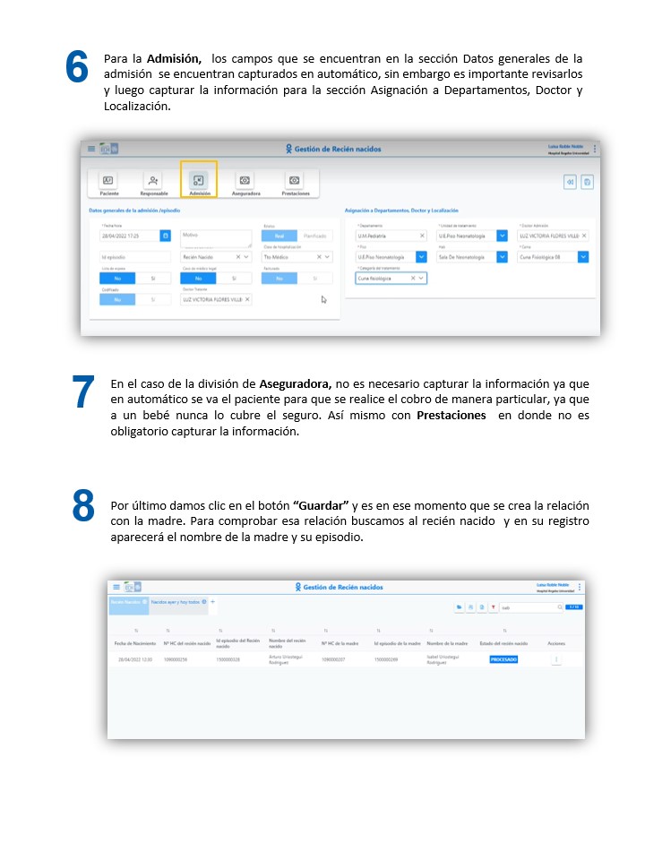 Recién nacidos - Crear paciente, admitir y relacionar con el episodio de la madre
