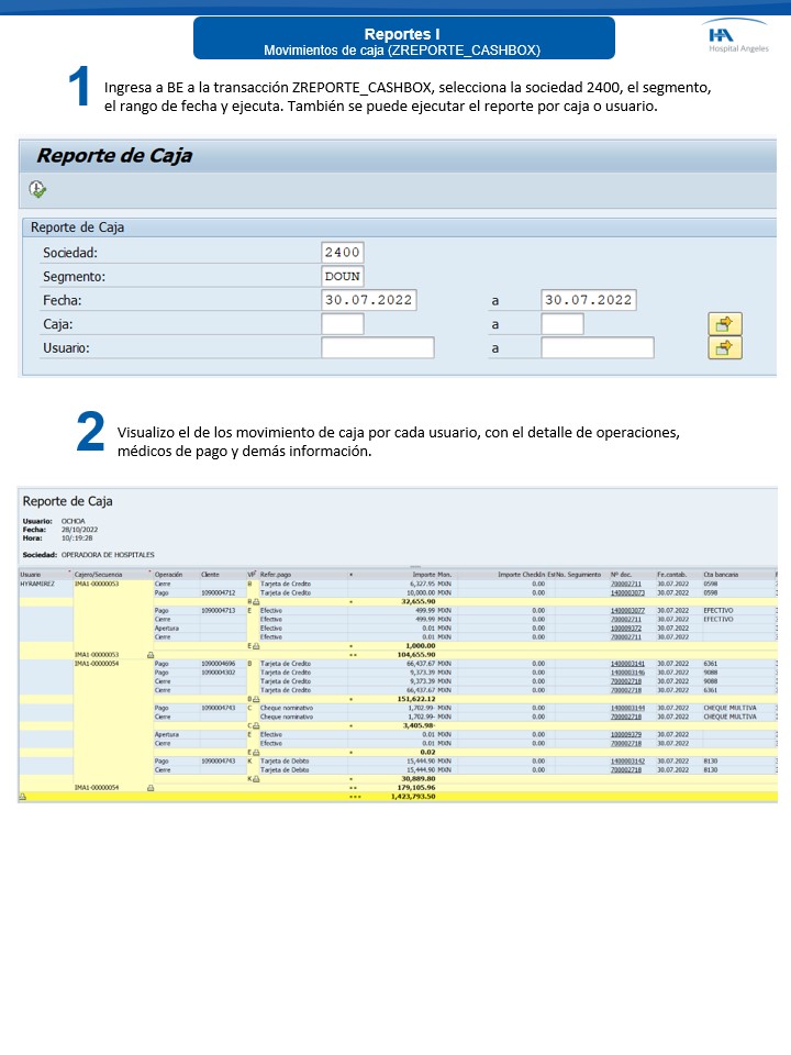 Manual ECH (Clinico - Gestión - Facturacion)Admision - Caja4to bloque de contenidos para Admision - Caja Reportes I - Movimientos de caja (ZREPORTE_CASHBOX) Creado con el Personal Edition de HelpNDoc: Crear fácilmente archivos Qt Help de ayuda