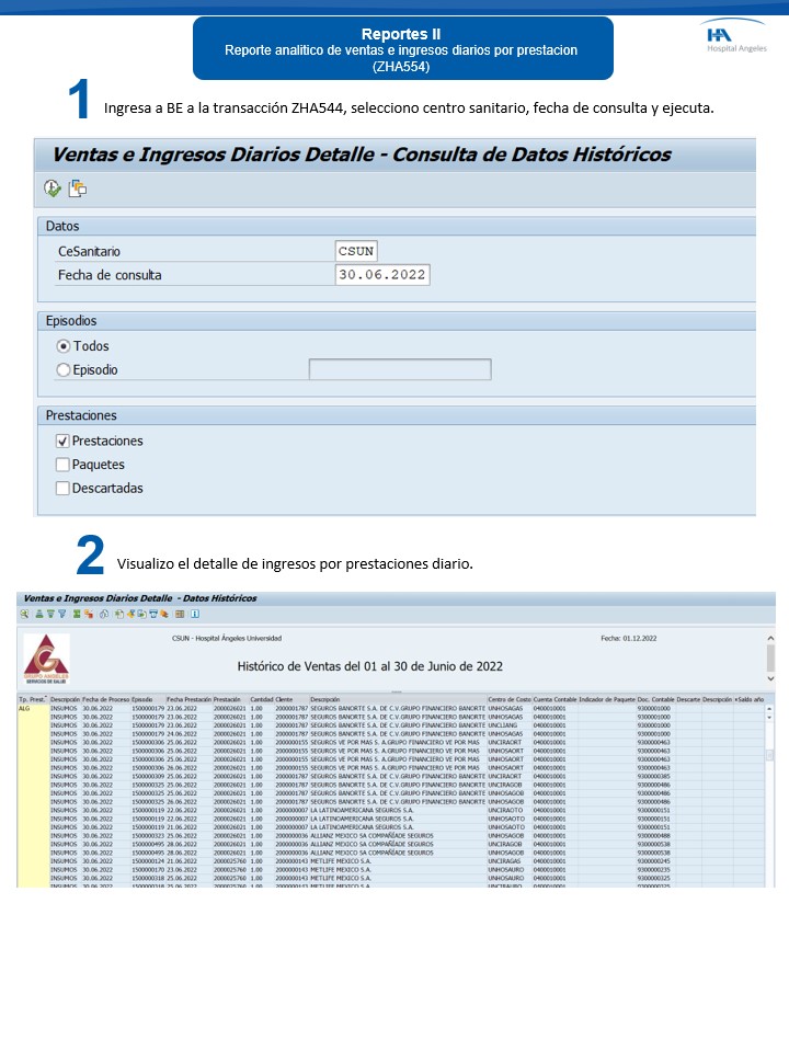 Reportes I - Reporte Analítico de ventas e ingresos diarios por prestación (ZHA544)